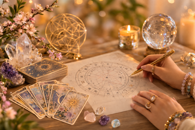 Kombinace astrologie a tarotu přináší celistvý pohled.